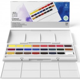 Acuarelas extrafinas de extraordinaria calidad. Se presenta en una cómoda caja de plástico muy ligera y resistente con 24 medios Godets. Esta serie de colores tiene una transparencia óptima y un poder colorante excelente. Oferta sólo válida para compras por Internet.