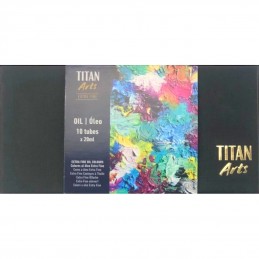 TitanArts dispone de dos gamas de pintura al óleo. Esta es la gama más alta, la extrafina. Se caracteriza por una elevada concentración de pigmentos junto con aceites puros. Los colores son intensos, brillantes y con una alta resistencia a la luz. La caja óleo Titan que se presenta aquí está indicada para personas que quieran un acercamiento al óleo o para reponer los colores más utillizados a un precio más económico.