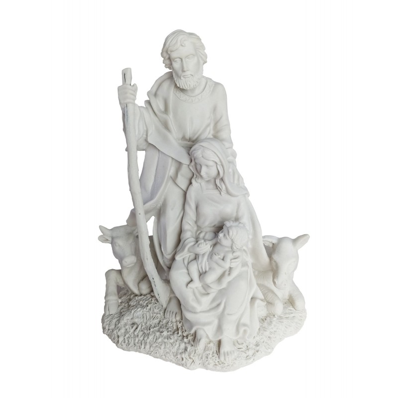 Belén compacto en resina blanca. Los rasgos de las figuras están nítidos y detallados. Se venden en blanco para decorar como se desee, pintados, teñidos o con pan de oro o plata.