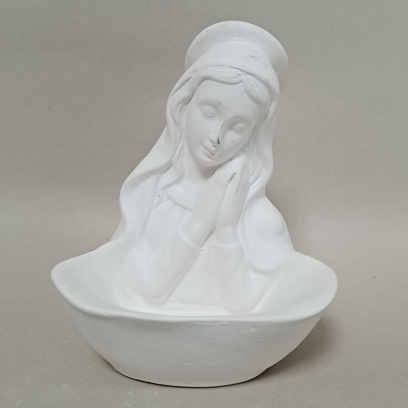 Pieza de Virgen porta Rosario en escayola, en tamaño 15 cm, para decorar.