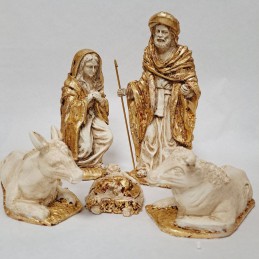 Nacimiento para Navidad Belén de resina blanca de tres piezas: San José, Virgen María y Niño Jesús. Nacimiento de altura máxima aproximada 20 cm. Gran calidad y detalle, imitando la textura de ropa. Los rasgos de los rostros son muy bonitos tal y como se aprecia en las fotografías.