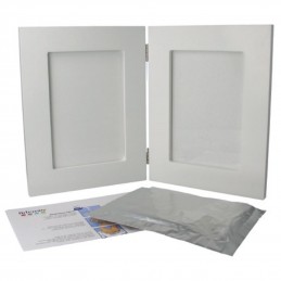 Kit o conjunto de marco huella Bebe. Dos marcos de 12,5 cm unidos por una bisagra. Uno para poner una foto de bebé y el otro para estampar su huella y crear un recuerdo. Marca Artemio.