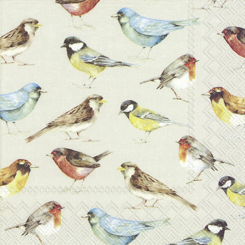 5 servilletas bonitas para decoupage de tamaño abierto 33x33 cm. Gran calidad. Servilletas de papel de 3 capas. Modelo The birds. Motivo de pajaritos de IHR Ideal Home Range. Precio por 5 servilletas.