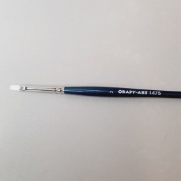 Pincel para pintar del número 2. La fibra sintética con la que está hecho es de una dureza media. Su acabado en punta permite hacer trazos mínimos o detalles cuando se carga poca pintura y no se aprieta la cabeza del pincel contra el soporte. Por contra, si cargamos más pintura y utilizamos todo el ancho del pincel, éste se comporta como un pincel plano. por eso hemos puesto como título pincel para pintar de uso amplio. Además esta fibra es de una dureza intermedia por lo que se puede usar con acrílico, óleo y témpera.