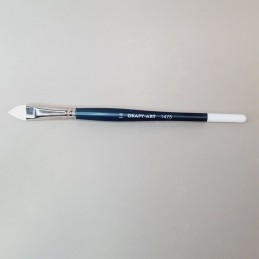 Pincel con forma lengua de gato, es decir, plano y terminado en punta. Por su forma es un pincel para pintar flores y hojas con facilidad. Tamaño del número 6, pelo sintético blanco y mango corto.