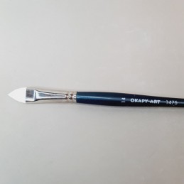 Pincel para manualidades y bellas artes de pelo sintético y de mango corto. La forma es de lengua de gato, es decir, plano con las esquinas redondeadas. Se corresponde con la serie 1475 de la marca Okapy - Arte. El número 22 tiene una salida o longitud de 24 milímetros y un ancho de 22 milímetros.