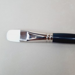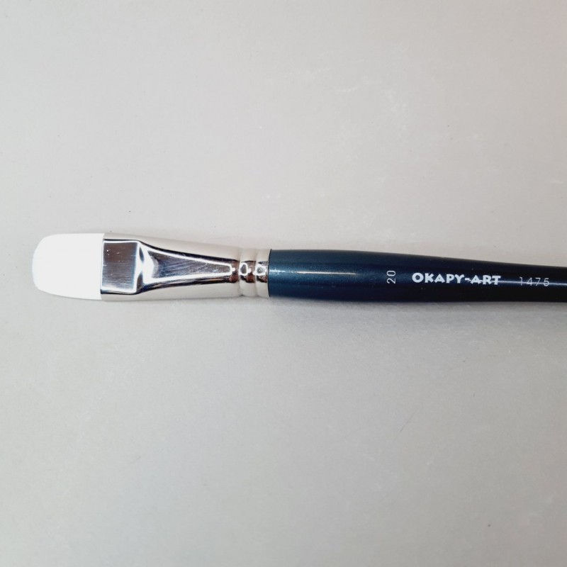 De fibra sintética tipo Toray Blanco son pinceles para bellas artes y para pintura decorativa. El número 20 es ya un pincel que da un trazo grueso ya que su anchura es de 20 milímetros. Su forma es plana y redondeada en las puntas. Por eso se llaman de forma de lengua de gato. La longitud de la fibra es de 22 milímetros.