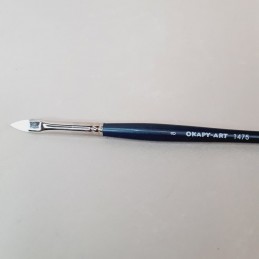 Su fibra sintética de dureza intermedia hace que sean unos recomendables pinceles para pintura acrílica. Pincel de forma lengua de gato, de la marca Okapy Art del número 8, y mango corto.